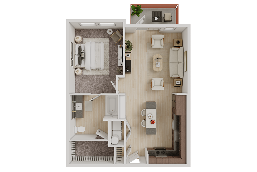 Freesia - Floorplan 2 Apartment Unit: 209Apartment Model: Freesia1 Bedroom, 1 Bath, 720 sq ftAvailable December 27, 2025Lily