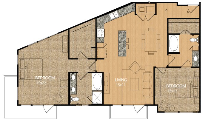 2 Beds, 2 Baths, 1389 sq ftAvailable NowLargest 2 BedroomThis is the largest 2 Bedroom at this PropertyModel Gallery