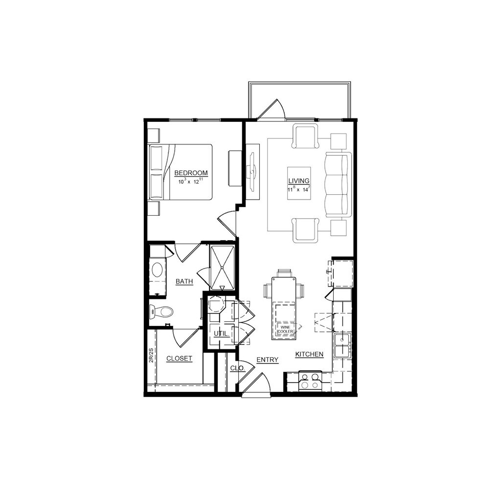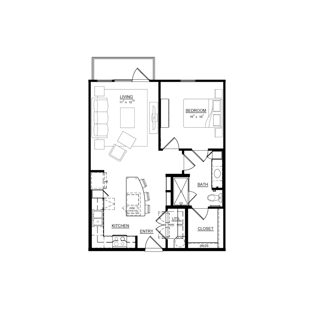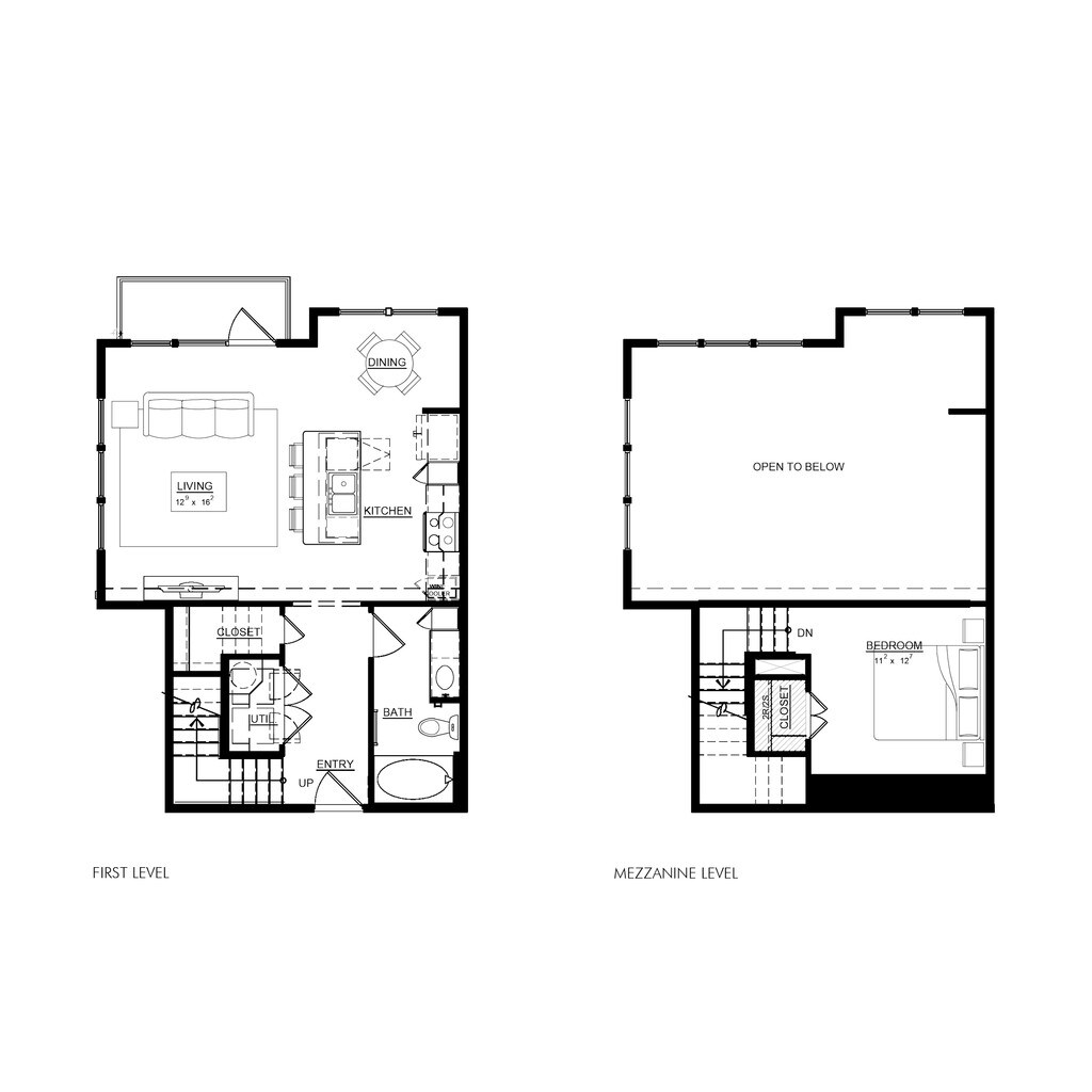 1 Bed, 1 Bath, 690 sq ftModel Gallery