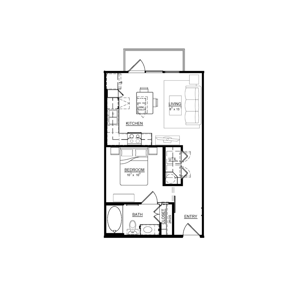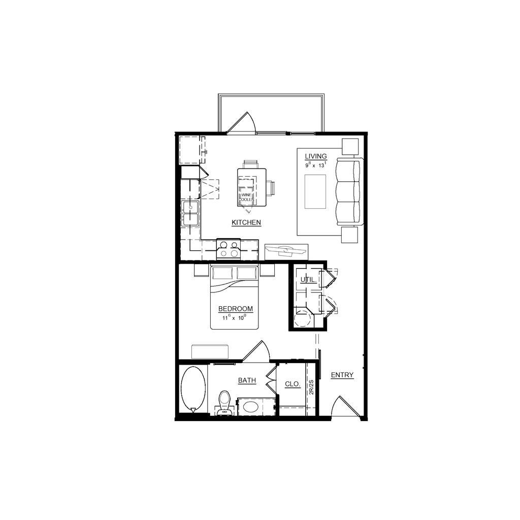 1 Bed, 1 Bath, 540 sq ftModel Gallery