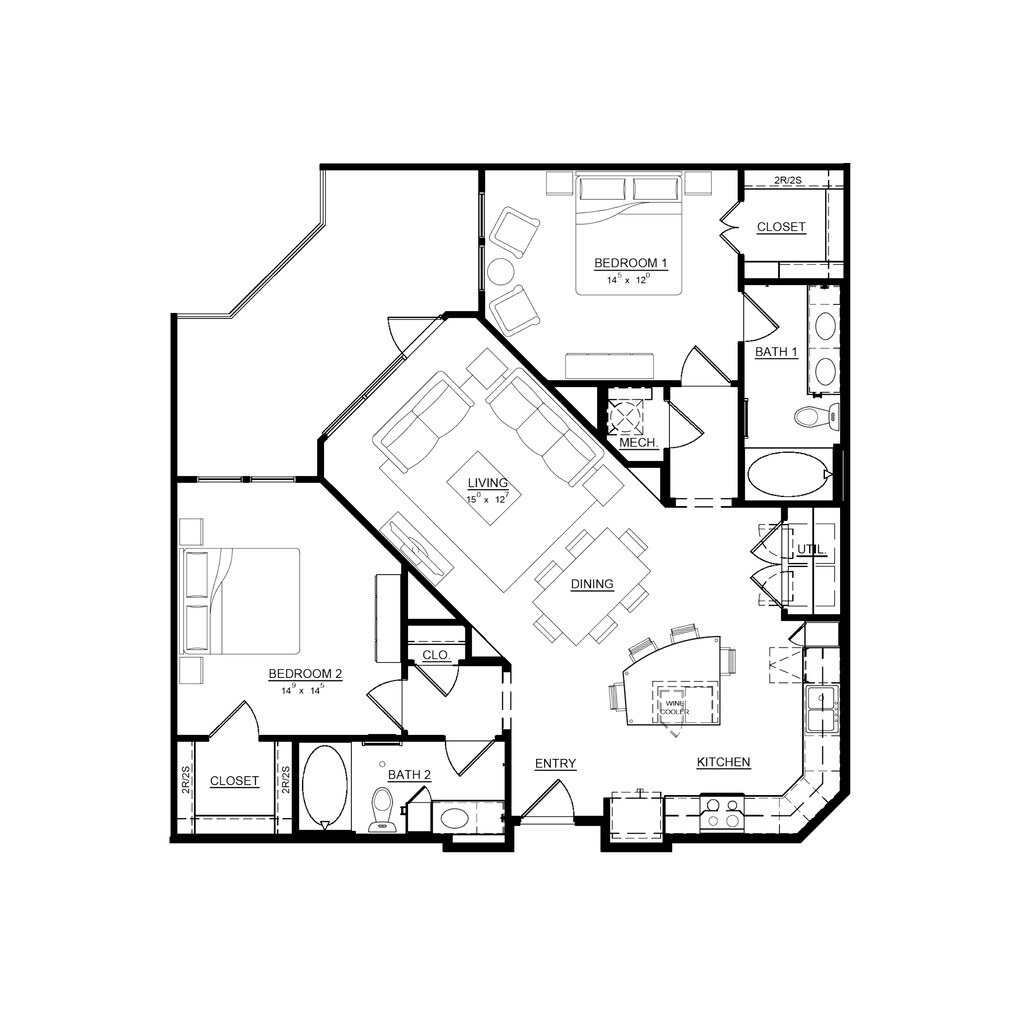 2 Beds, 2 Baths, 1515 sq ftLargest 2 BedroomThis is the largest 2 Bedroom at this PropertyModel Gallery