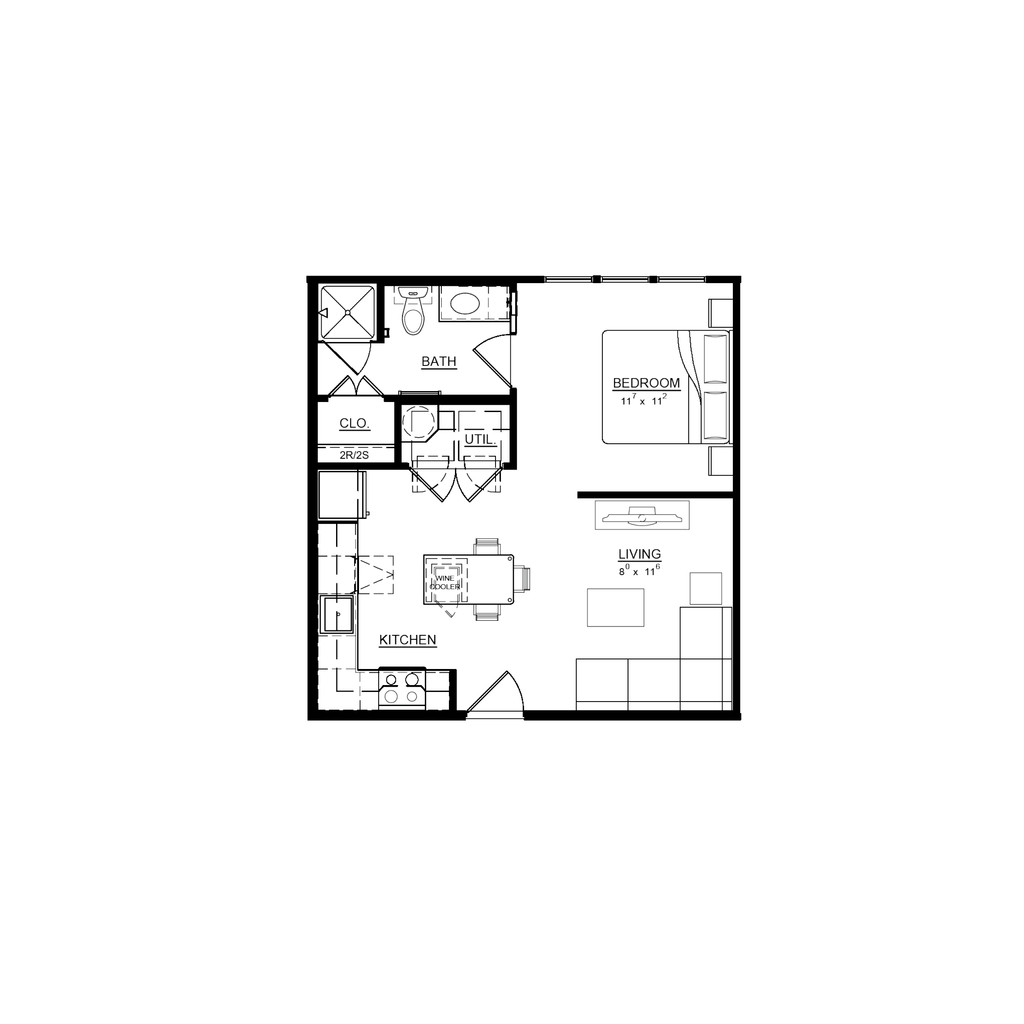1 Bed, 1 Bath, 600 sq ftModel Gallery
