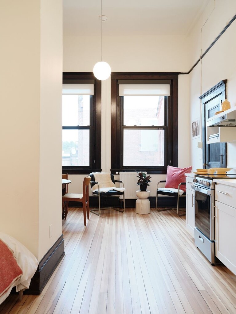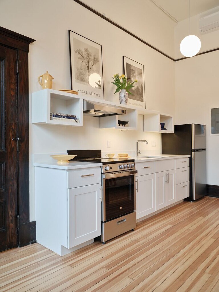 One-of-a-kind residences with open floor plans, high ceilings, expansive windows and large rooms. At the heart of every residence is a well-appointed kitchen. Custom finishes and textures abound: Scandinavian white-washed flooring, finely milled cabinetry, high end kitchen appliances, shared washer/dryer, keyless electronic entry, designer light fixtures, Energy Star Rated.