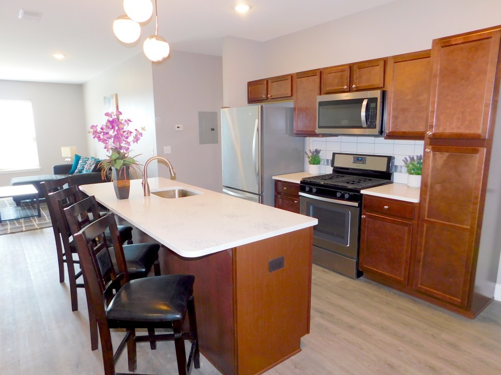 This Newly Built Apartment and Townhome complex offers high end luxury apartments and townhomes. Those 2 BR- 2 Bathroom upper apartment above a commercial space as a secure access and intercom to provide access conviently from your unit to guests. The main living spaces have durable luxury vinyl tile planks resembling warmth of wood plank flooring with out the maintenance fussiness. The kitchen comes well-appointed with upgraded modern contemporary finishes, stainless steel appliances, classic quartz counter tops and on point white backsplash with modern mix of accent glass to round out this modern contemporary unit. The unit has tow bedrooms both with on-suite bathrooms featuring dual sinks and oversized ceramic tile and quartz counters, one has a tiled walk in shower and the second has a tub shower unit. The bedrooms are carpeted with plenty of natural lighting and large walk in closets. This unit also features a spiral staircase which leads to a large loft area overlooking the main living area perfect for a guest space or office. The unit has full size washer and dryer and includes ample parking and a dedicated one car garage. There is two sizes is of the Townhomes. Smaller ones start at 1200sq and larger ones are a 1,575sq foot . They feature 2 BR- 2 or 2.5 Bath , one or two story style town home with private entrance and attached one car garage. The main living spaces have durable luxury vinyl tile planks resembling warmth of wood plank flooring with out the maintenance fussiness and built in corner fireplace and walk out private patio area. The kitchen comes well-appointed with upgraded modern contemporary finishes, stainless steel appliances, classic quartz counter tops and on point white backsplash with modern mix of accent glass to round out this modern contemporary unit. The unit has two bedrooms each with on-suite bathrooms with oversized ceramic tile and quartz counters and dual sinks; the master offers a tiled walk in shower and the second bath offers a tub/shower combo unit leading to a large walk-in closet. The bed rooms are carpeted and with plenty of natural lighting. The unit has full size washer and dryer and is ADA adaptable.