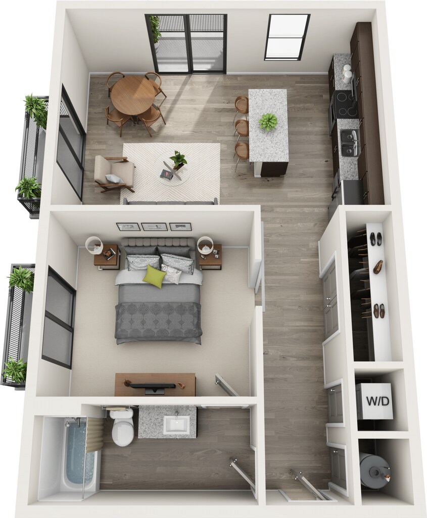 1 Bed, 1 Bath, 667 sq ftAvailable NowModel Gallery