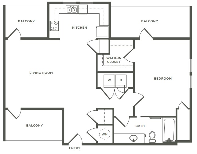 1 Bed, 1 Bath, 600 sq ftAvailable NowModel Gallery