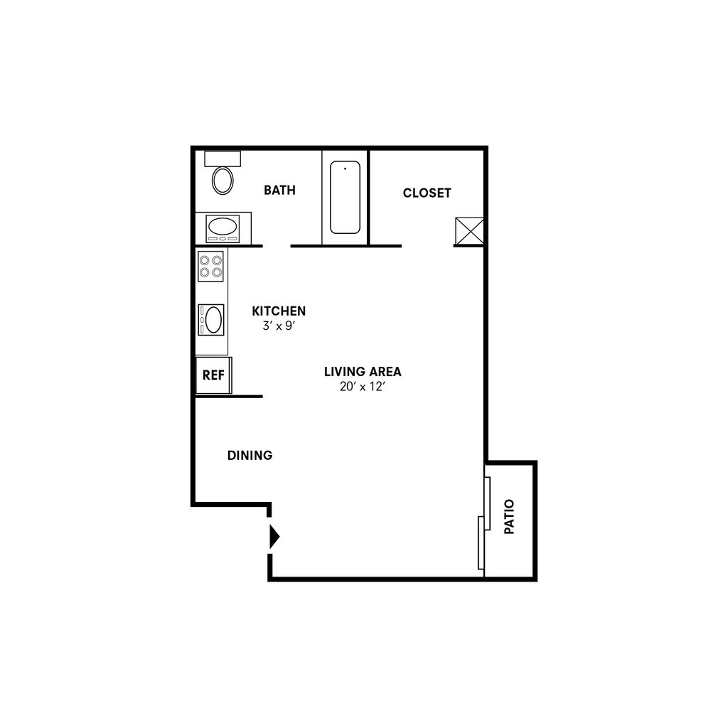Studio, 1 Bath, 360 sq ftAvailable NowModel Gallery