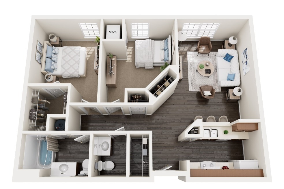 2 Beds, 2 Baths, 880 sq ftModel Gallery