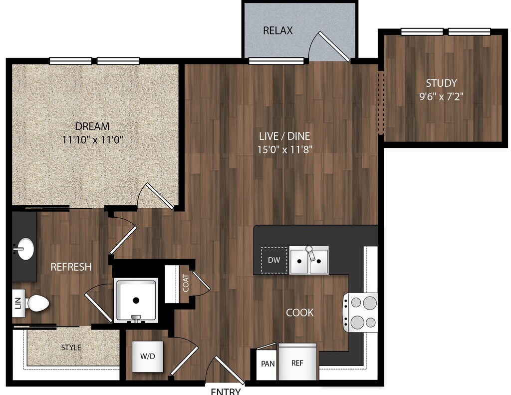 Studio, 1 Bath, 552 sq ftAvailable NowModel Gallery