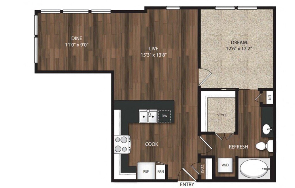 Studio, 1 Bath, 571 sq ftAvailable NowLargest StudioThis is the largest Studio at this PropertyModel Gallery
