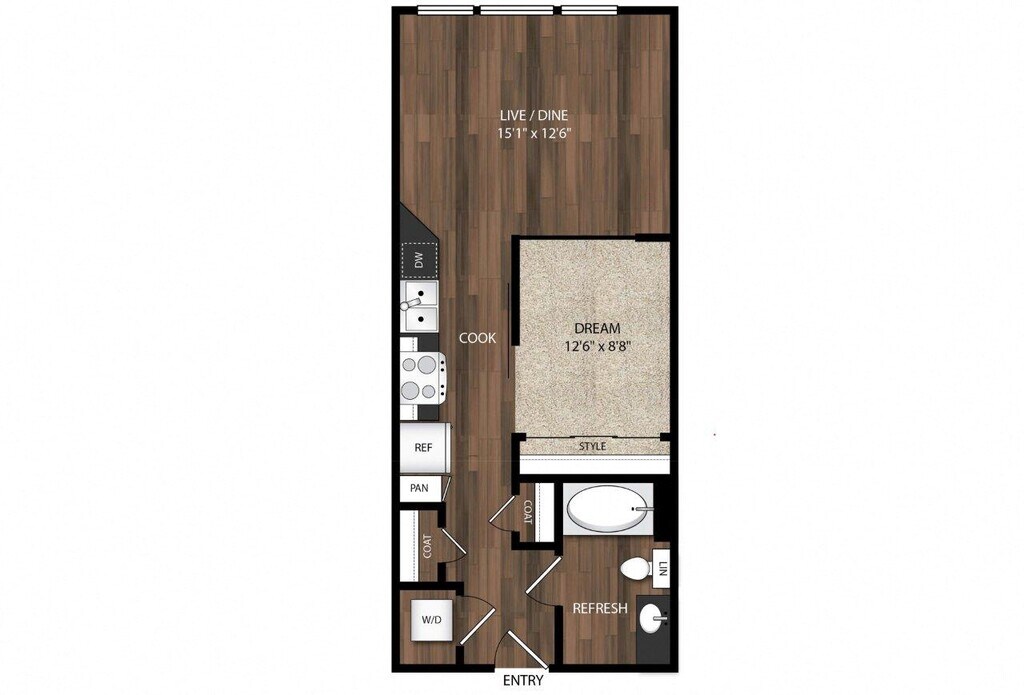 Studio, 1 Bath, 513 sq ftAvailable NowModel Gallery