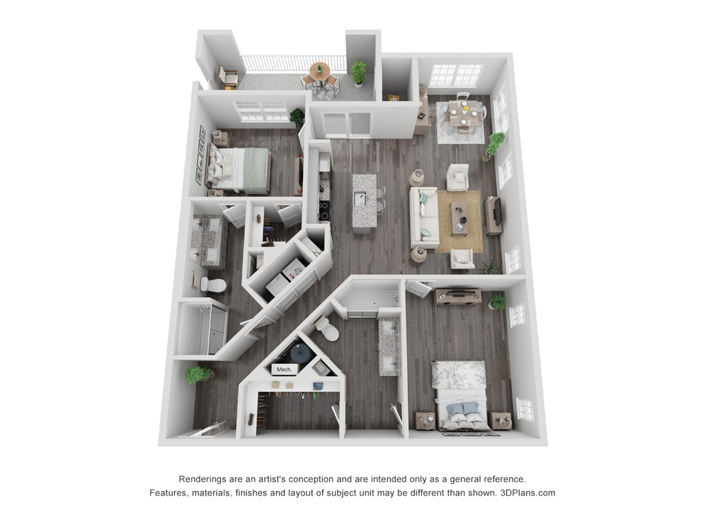 2 Beds, 2 Baths, 1231 sq ftAvailable Dec 5Largest 2 BedroomThis is the largest 2 Bedroom at this PropertyModel Gallery