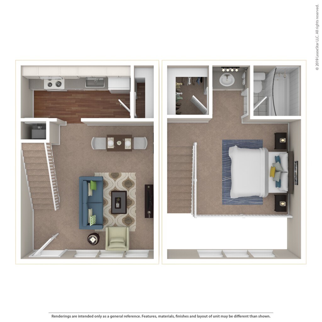 Apartment Model: 1x1 TownhouseFrom $8191 Bedroom, 1 Bath, 800 sq ftAvailable Now![]()