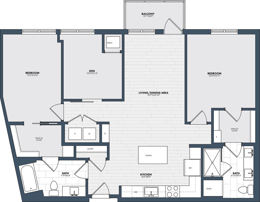 Apartment Model: 2 Bed/2 Bath-B2-3$2,8122 Bedroom, 2 Bath, 1070 sq ftAvailable NowFloor plans are artist's rendering. All dimensions are approximate. Actual product and specifications may vary in dimension or detail. Not all features are available in every rental home. Please see a representative for details.