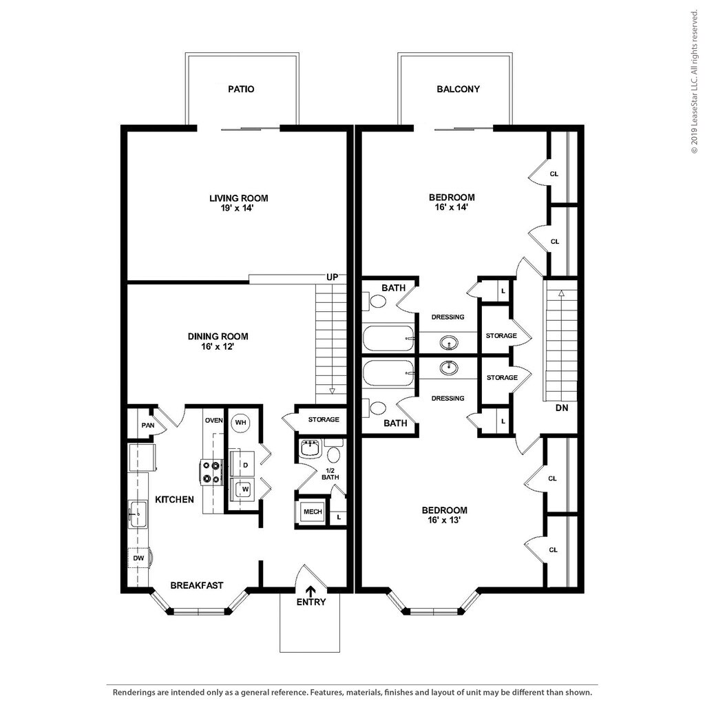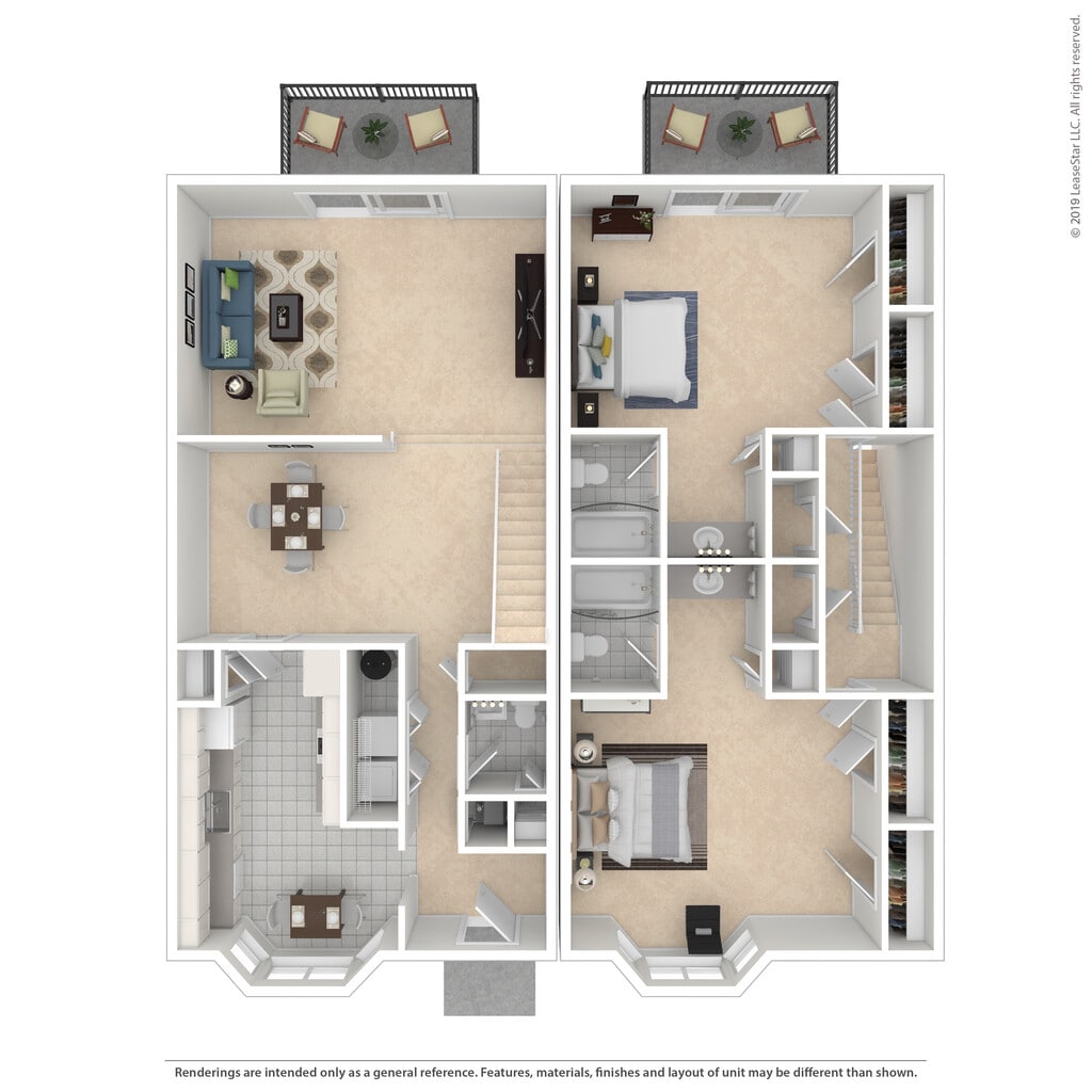 Apartment Model: 2x2.5 Townhome$1,3002 Bedroom, 2.5 Bath, 1800 sq ftUnavailable![]()