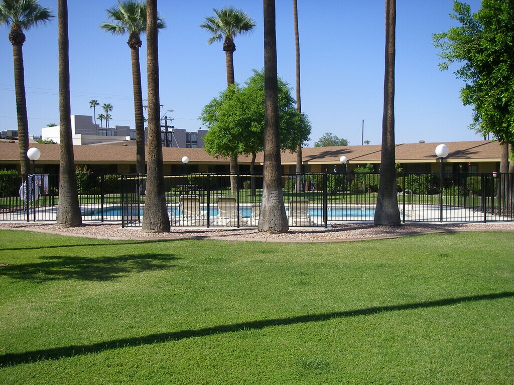 Lovely large Deluxe one bedroom private apartment of 750 sq ft. Very nice kitchen wirh stainless appliances, microwave over stove and freshly painted. The property consists of 20 single story units on one acre of manicured lawns and pool all within a gated community. Each unit has a private patio overlooking the spectacular landscaping. Covered parking space included.. Individually air conditioned for your comfort and convenience. Private, quiet area located at the end of a cul-de-sac in the Historic District of Central Phoenix. Close to great amenities, such as Uptown Plaza, rapid transit just three blocks away, great restaurants, fitness centres etc. Extremely convenient to everything one needs. The property has all been upgraded with new AC units, windows, etc. A great on-site caretaker attends to any matters that need attention and is managed by a professional and local property manager. The rent is $1450 plus $35 for water. Calling through this sites phone system for faster responce.