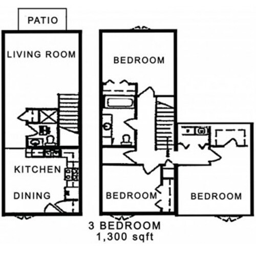 Apartment Model: 3 Bedroom 2 BathroomFrom $1,1953 Bedroom, 2 Bath, 1300 sq ftUnavailable![]()