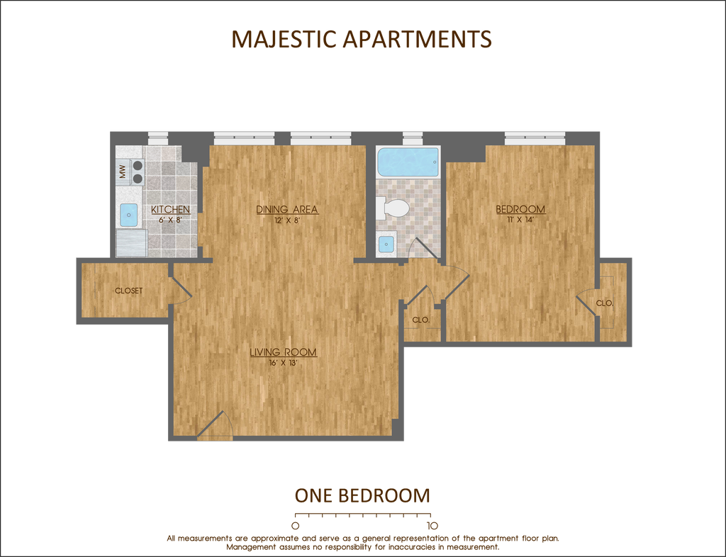 August 18, 2020I lived at the Majestic for 3 years, two of which under the current management. I found my 470 sq ft studio quite spacious for one person, particularly with the huge walk-in L-shaped closet and ample shelving (I'm an avid homebrewer and was able to fit a mini fridge AND chest freezer while keeping my queen bed!). Great natural lighting. AC window unit is surprisingly effective. The kitchens are fairly small but fine for one person. However, they apparently don't get much bigger even if you ...spring for a 1BR or 2BR. That, plus the lack of in-unit WD or laundry, are really the only reasons I moved out in order to share space more comfortably with my girlfriend. I found the management very friendly and reasonable, and the maintenance staff responsive and professional. I would see the occasional small cockroach in the kitchen during summers, but this is normal in an urban apartment building. Great rooftop views and even a recently-added modest basement gym. Fast elevators. It wasn't an easy decision to leave the Majestic and I'd highly recommend to anyone! - SamProperty Manager Responded