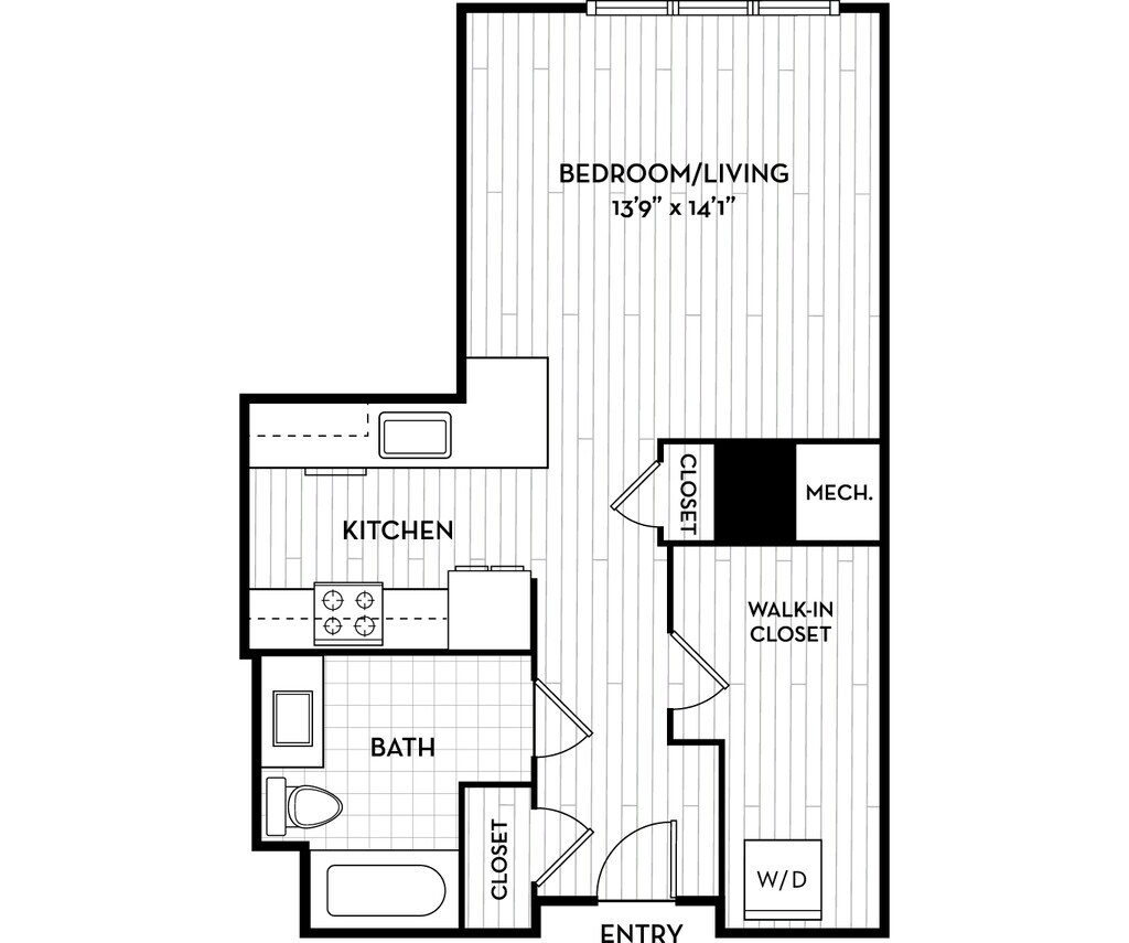 Studio, 1 Bath, 549 sq ftTotal Monthly PriceAvailable NowModel Gallery