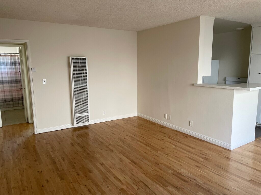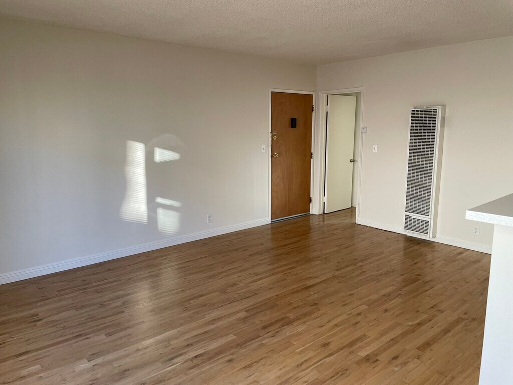 Hollywood location, north of Santa Monica blvd., great 1 bedroom / 1 bath apartment AVAILABLE TO OCCUPY RIGHT NOW! Upper floor unit #6, remodeled, hardwood floors, AC, stove, refrigerator, microwave, updated kitchen with quartz countertops, one covered parking space included, small building, gated, quiet neighborhood, close to shopping, restaurants and public transportation. Pet cats OK.