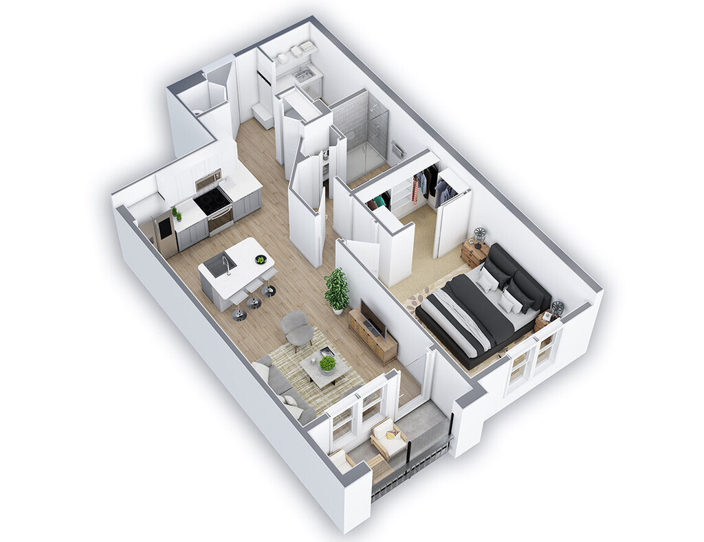 1 Bed, 1 Bath, 831 sq ftAvailable NowModel Gallery