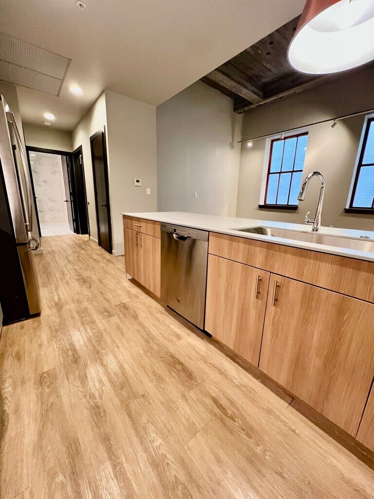 January 5, 2022I co-rent a 2 bedroom, and while it's apparent that the building was "cheaped out" on in various areas, I've seen much much worse as far as city apartments go, and overall I feel like I'm getting what I'm paying for. The unfinished paint look that was selected for a lot of areas is probably the biggest annoyance, and seems like a pretty clear-cut case of cutting corners on finish materials. Somehow they still found plenty of money for some gaudy furnishings in the lobby spaces. The amenities for ...the building are pretty cool: Both roof areas are comfortable with nice views/light and I've had a lot of success with entertaining guests here. When I first moved in they had us paying for parking in an open access lot, and sure enough my car was broken into, along with the cars of many of the other tenants. When we complained they did install an operating gate. (Although it's still kind of a ugly old parking lot). Dealing with sound has also been a challenge since the high unfinished ceilings are very echo-y. Paint job is sloppy in some areas, and flooring material is low end, but I haven't had too much material failure in either, and all the appliances/fixtures work well, apart from one faucet that I had to re-fasten on my first day in.Property Manager Responded