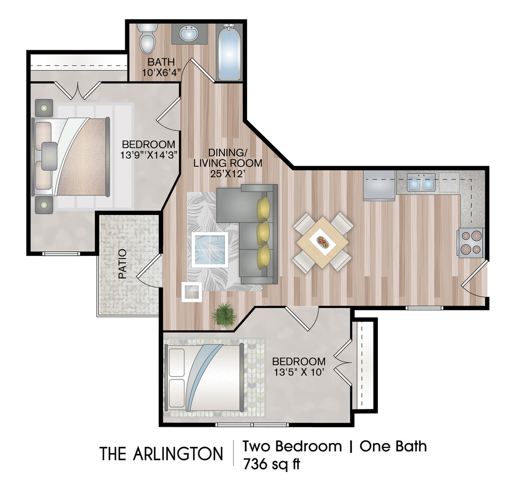 Apartment Model: The Arlington Premium Plus (Active Sr. Community)Call For Rates2 Bedroom, 1 Bath, 803 sq ftUnavailable![]()