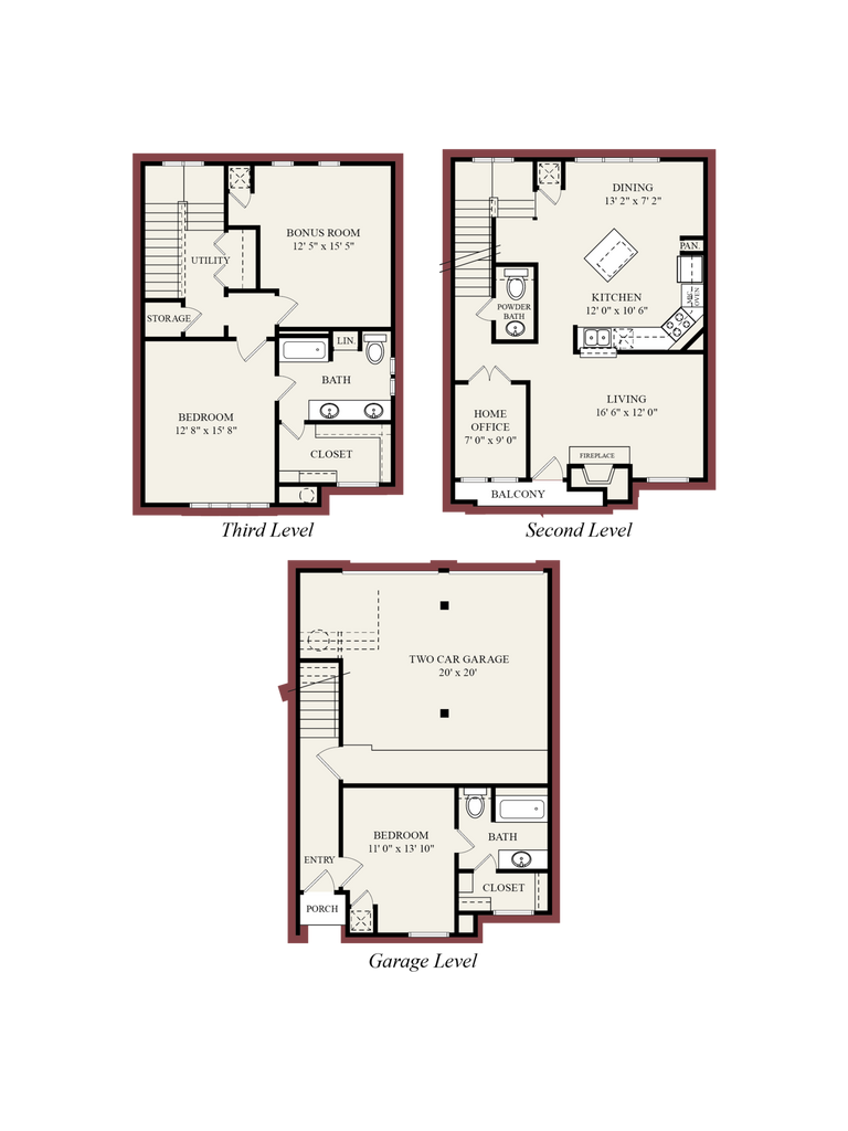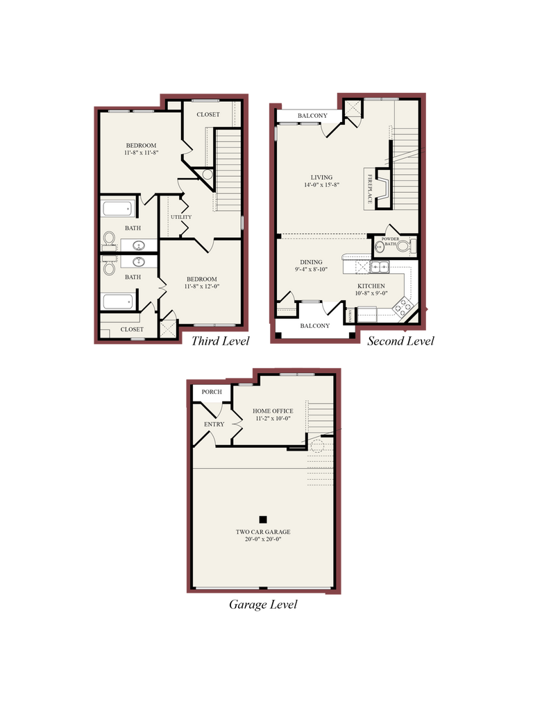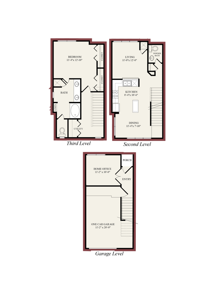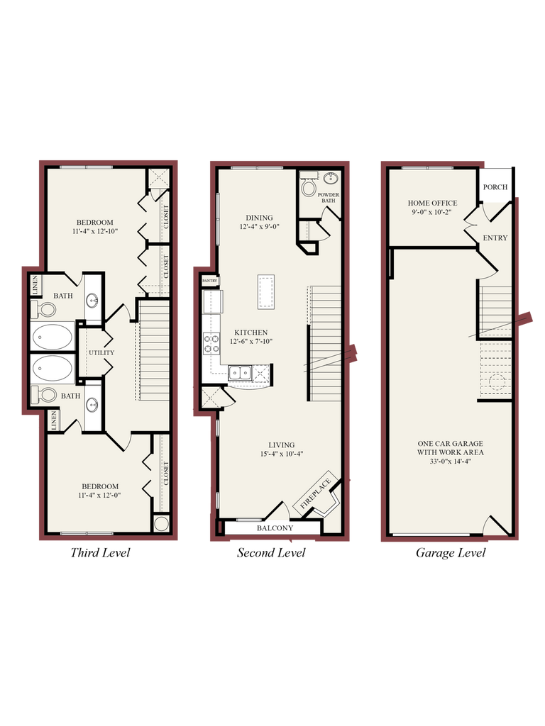 A4-Townhome - Image 4 Floor plans are artist's rendering. All dimensions are approximate. Actual product and specifications may vary in dimension or detail. Not all features are available in every rental home. Prices and availability are subject to change. Base rent is based on monthly frequency. Additional fees may apply, such as but not limited to package delivery, trash, water, amenities, etc. Deposits vary. Please see a representative for details.