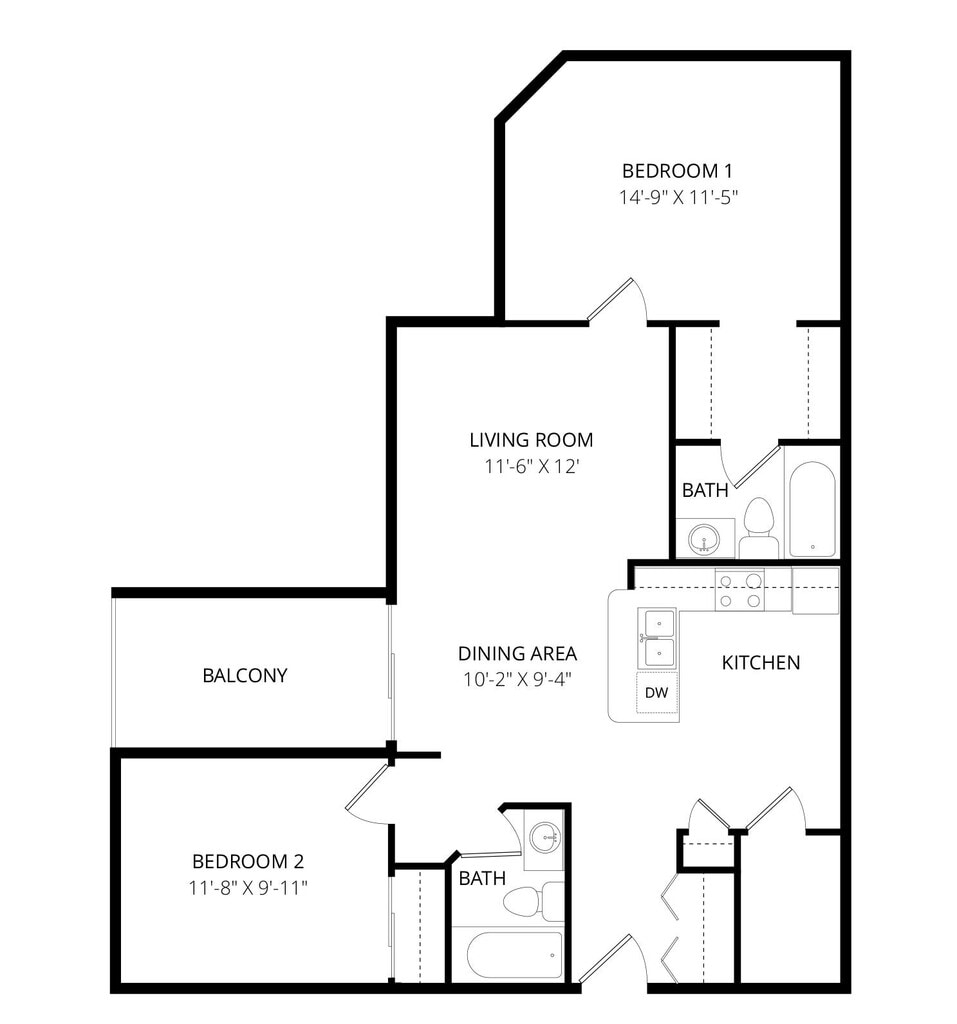 2 Beds, 2 Baths, 881 sq ftAvailable NowModel Gallery