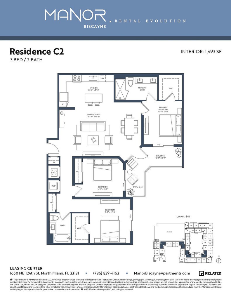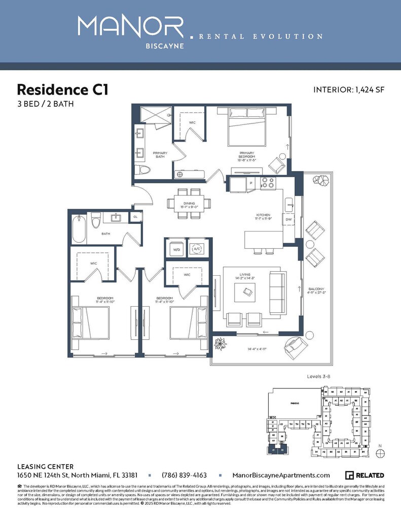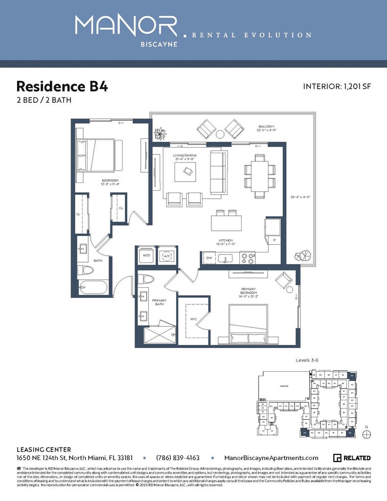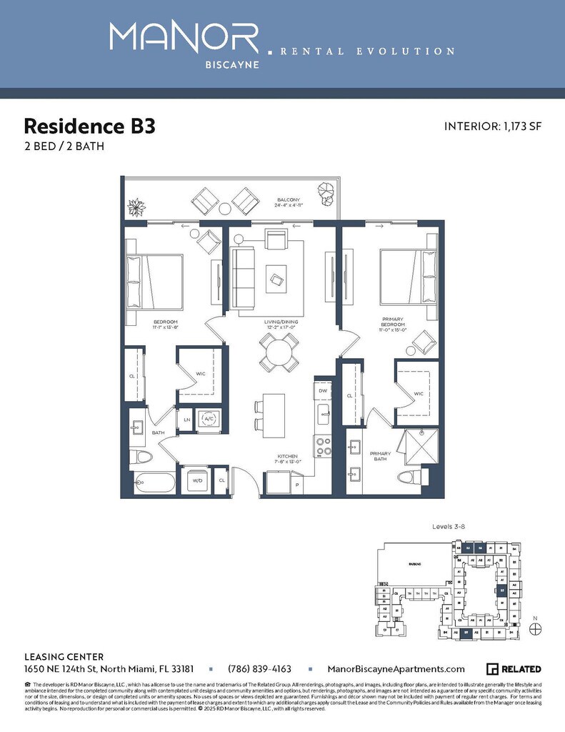 Studio to 3 Bedroom Apartments at Manor Biscayne currently range from $2,672 to $5,802