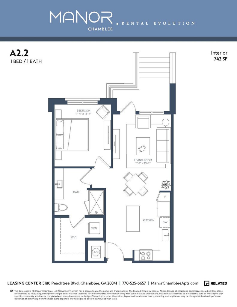 Apartment Model: A2.2From $2,1101 Bedroom, 1 Bath, 742 sq ftAvailable Now![]()