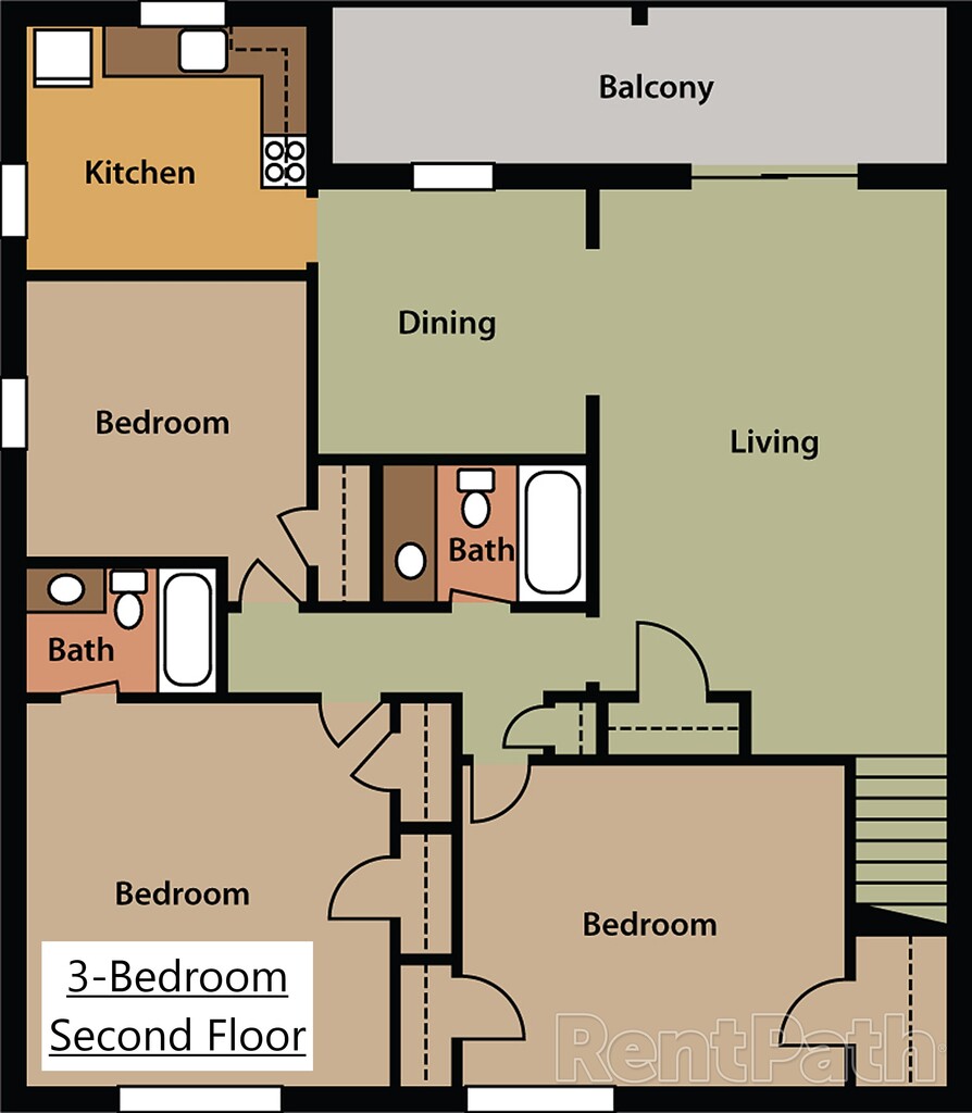 - 3 Bedrooms- Three Bedroom Apartment- From $1,9853 Beds, 2 Baths, 1437 sq ftAvailable Now- Model Gallery- Floorplans- Availability Details- Price - Availability Date - Unit - Sq Ft - Deposit - From $1,985 - Available Now - Three Bedroom Apartment - 1437 sq ft - $1,000 - Model Amenities and Features- Features- Air Conditioning
