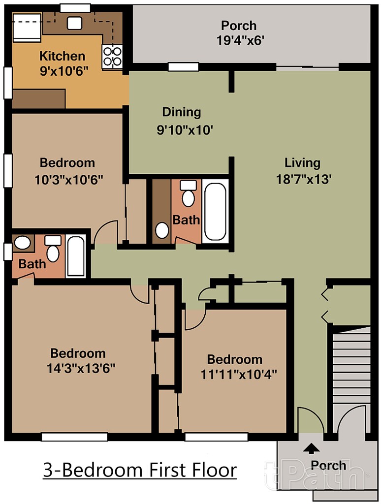 Apartment Model: Three Bedroom ApartmentFrom $1,9853 Bedroom, 2 Bath, 1437 sq ftAvailable Now![]() - Three Bedroom Apartment - Floorplan 1 ![]() - Three Bedroom Apartment - Floorplan 2