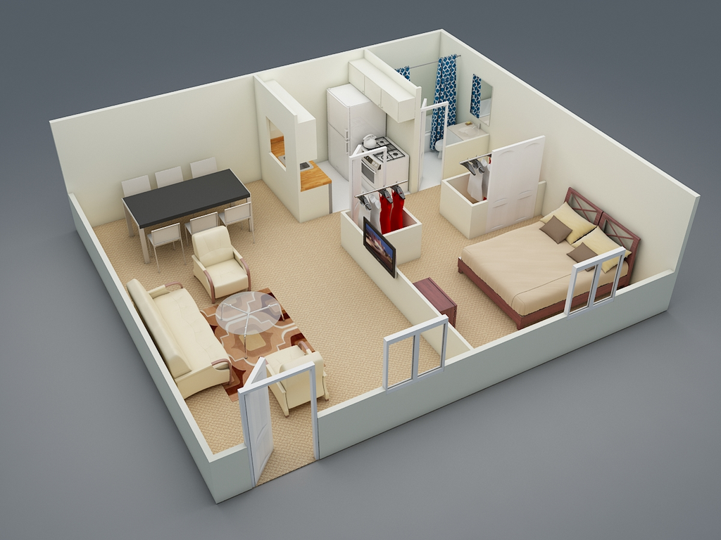 2 Beds, 1 Bath, 660 sq ftModel Gallery