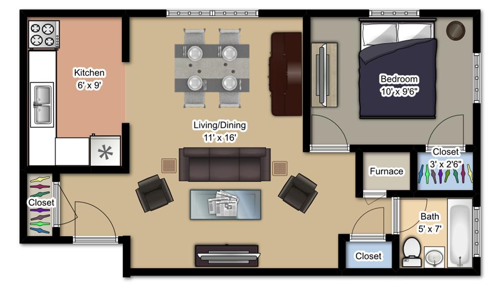 Apartment Model: One Bed One BathFrom $7501 Bedroom, 1 Bath, 550 sq ftAvailable NowFloorplansPhotosOne Bed One Bath - Image 1 One Bed One Bath - Image 2 One Bed One Bath - Image 3 One Bed One Bath - Image 4 One Bed One Bath - Image 5 One Bed One Bath - Image 6 One Bed One Bath - Floorplan 7
