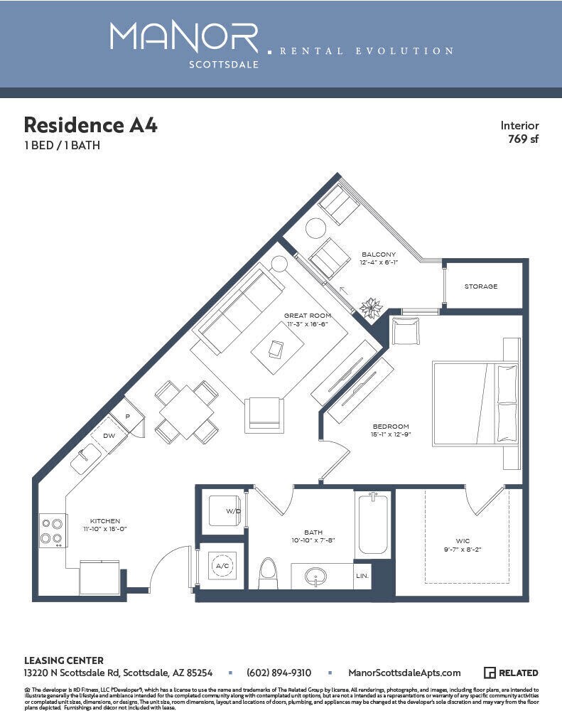 Apartment Model: A4$2,3251 Bedroom, 1 Bath, 769 sq ftAvailable Now![]()