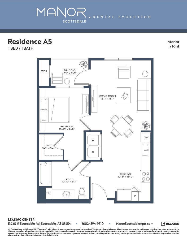 Apartment Model: A5From $2,0031 Bedroom, 1 Bath, 716 sq ftUnavailable![]()