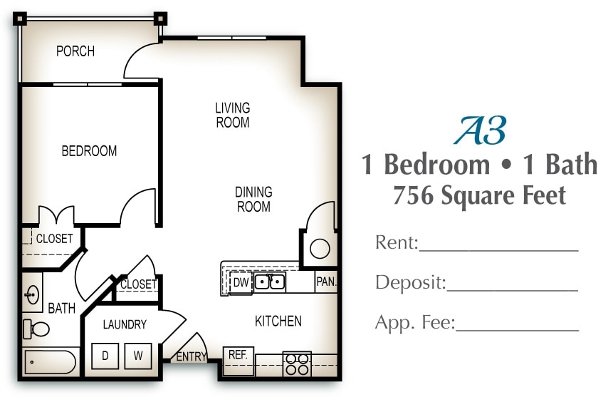 Apartment Model: A31 Bedroom, 1 Bath, 756 sq ftUnavailable![]()