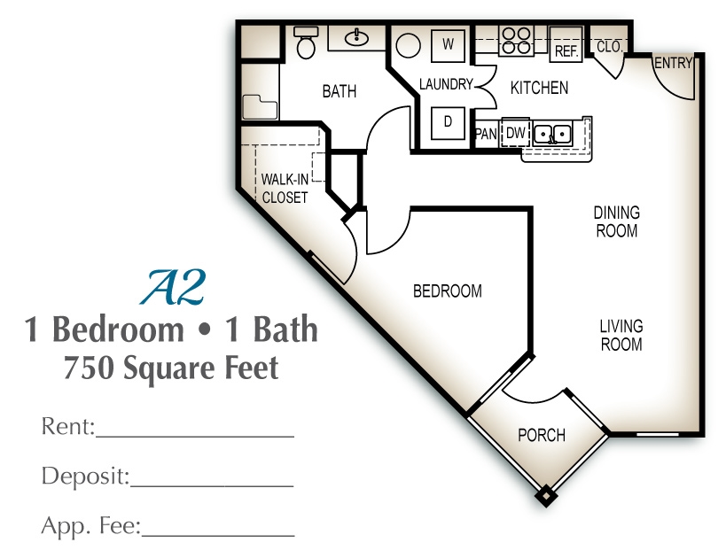 1 Bed, 1 Bath, 750 sq ftModel Gallery