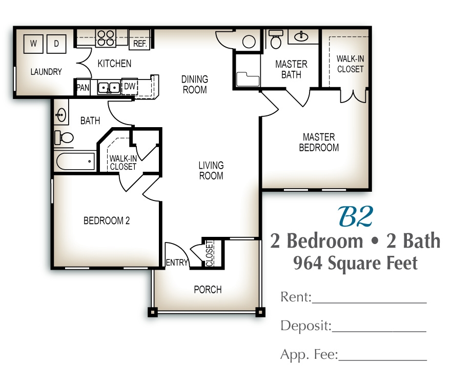 Apartment Model: B22 Bedroom, 2 Bath, 964 sq ftUnavailable![]()