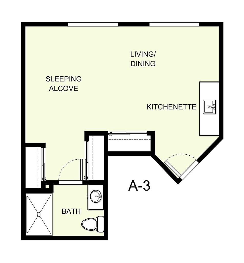 Apartment Model: StudioStudio, 1 Bath, 335-527 sq ftUnavailable![]()