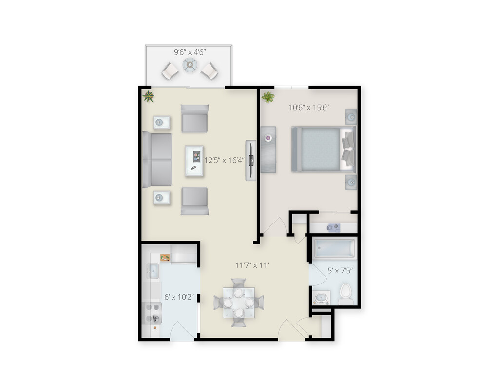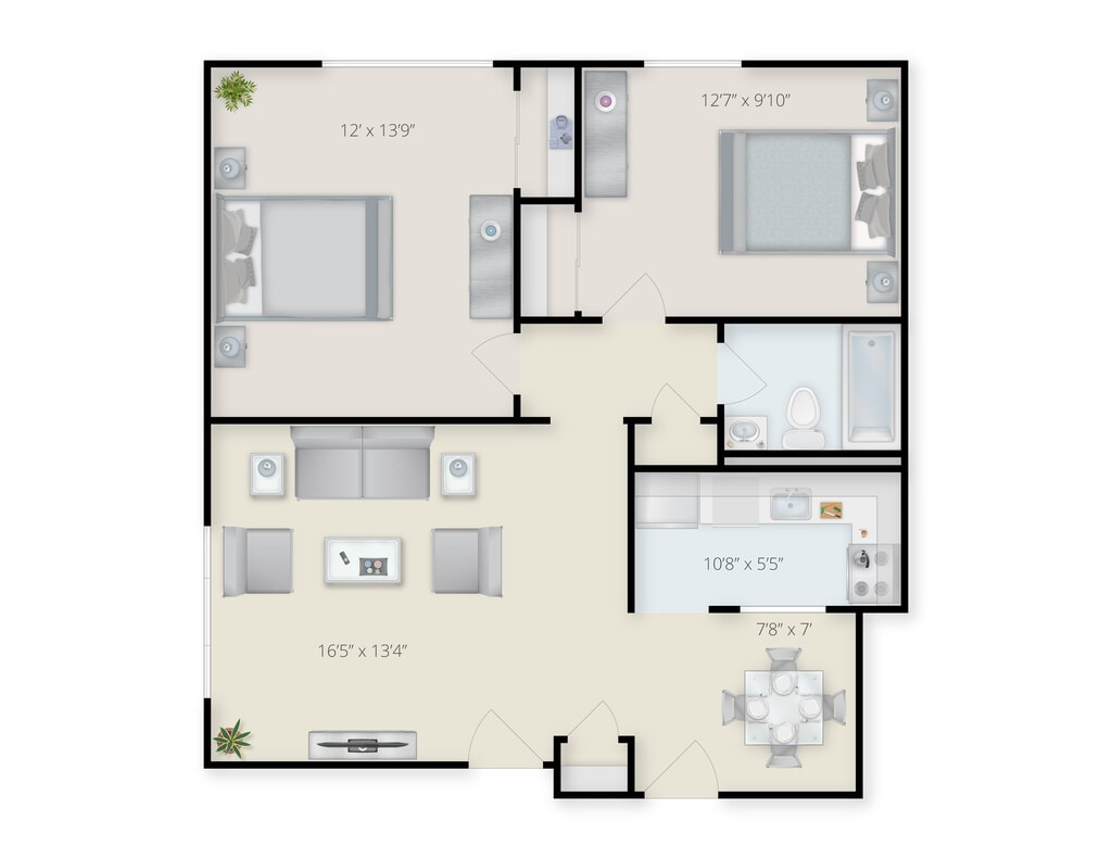 2 Beds, 1 Bath, 750 sq ftPlus FeesAvailable Oct 30Model Gallery
