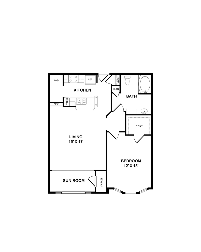This spacious 745 sq ft 1-bedroom 1-bathroom apartment features a generous living area that opens onto a sunroom. Abundant storage throughout the apartment includes a dedicated pantry, massive walk-in closet adjoining the bedroom, a linen closet, and foyer storage. The living area features thoughtful details, like the built-in desk space and peninsula adjoining the kitchen. Additional features include beautiful bay windows in the bedroom, a soaking tub in the bath, and an in-apartment washer/dryer. *Please ensure that your anticipated move-in date does not exceed 14 days from the selected apartment's "Available On" date in order to proceed with your application. Additional lease terms may be available. Please contact our leasing team directly for assistance. *Security deposits may vary depending upon qualification.