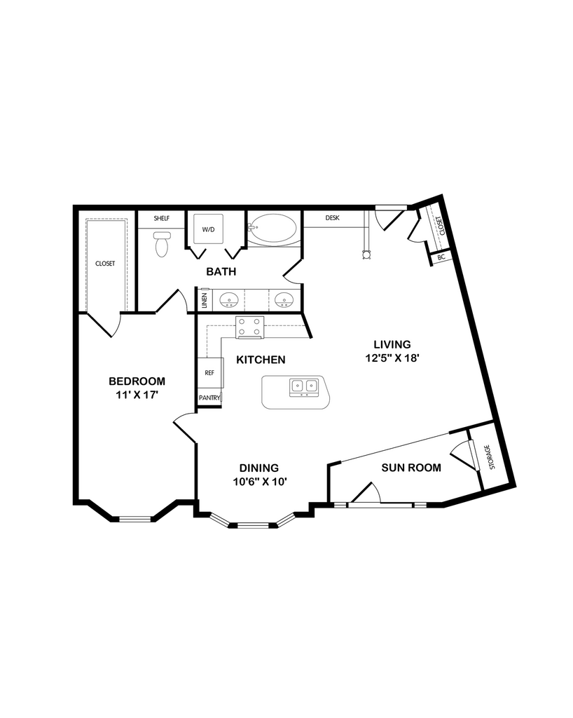 This spacious 887 sq ft 1-bedroom 1-bathroom apartment features a spacious living area that opens onto a sunroom. Abundant storage throughout the apartment includes a dedicated pantry, massive walk-in closet adjoining the bedroom, a linen closet, and dedicated sunroom storage. The living area features thoughtful details, like the built-in desk space and peninsula adjoining the kitchen. Additional features include beautiful bay windows in the bedroom, a soaking tub in the bath, and an in-apartment washer/dryer. *Please ensure that your anticipated move-in date does not exceed 14 days from the selected apartment's "Available On" date in order to proceed with your application. Additional lease terms may be available. Please contact our leasing team directly for assistance. *Security deposits may vary depending upon qualification.