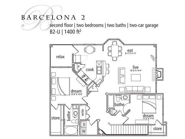 Apartment Model: Barcelona2 Bedroom, 2 Bath, 1410 sq ftUnavailable![]()