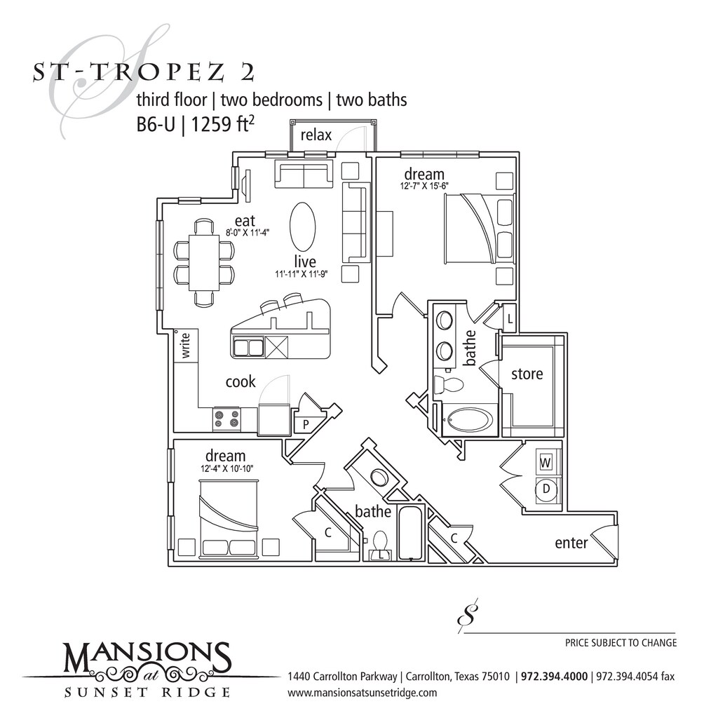 Welcome home to Mansions at Sunset Ridge Apartments, located in Carrollton, Texas! Stop by Mansions at Sunset Ridge Apartments today to find the perfect place to call home! We offer beautiful and modern one and two bedroom apartments, along with many luxury amenities including private garages, central air conditioning, washer and dryer included, fire places, outdoor areas, hardwood style flooring, two saltwater swimming pools with a relaxing hot tub, scenic walking trails, BBQ grilling areas, state-of-the-art fitness center, business center, on-site management and maintenance, and so much more! If you want to get out and about, you'll find great dining, shopping, and entertainment options very close by, such as Castle Hills Village Shops. Mansions at Sunset Ridge Apartments is also located near several of the area’s top schools, including Castle Hills Elementary School, Killian Middle School, and Creek Valley Middle School. With excellent access to major roads such as Highway 121 and Interstate 35, you can be anywhere in the area in just minutes. Apartment living has never been so luxurious or convenient! We are a cat, dog, and other pet friendly community. Come home to Mansions at Sunset Ridge Apartments today!