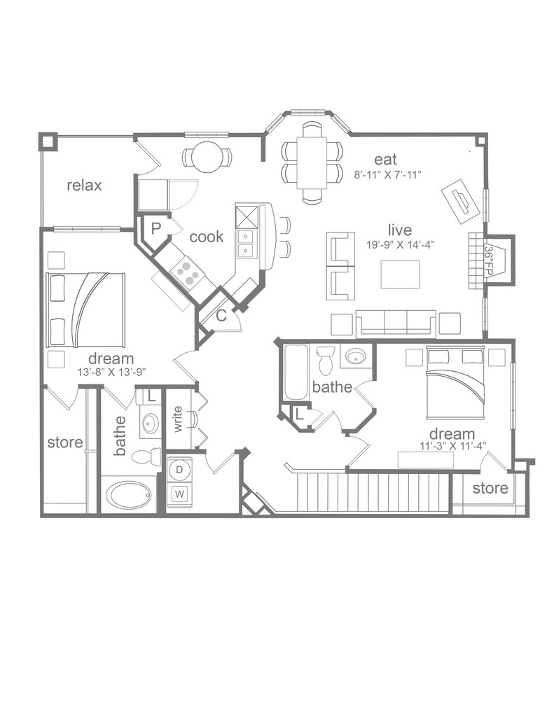 1 Bed, 1 Bath, 865 sq ftAvailable NowModel Gallery