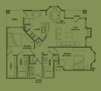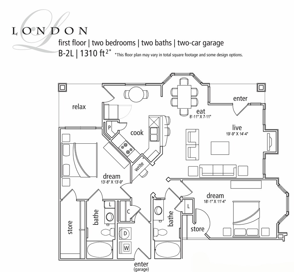 1x1.5: 2nd Floor Townhome Garage - Floorplan 1 2 Bedrooms