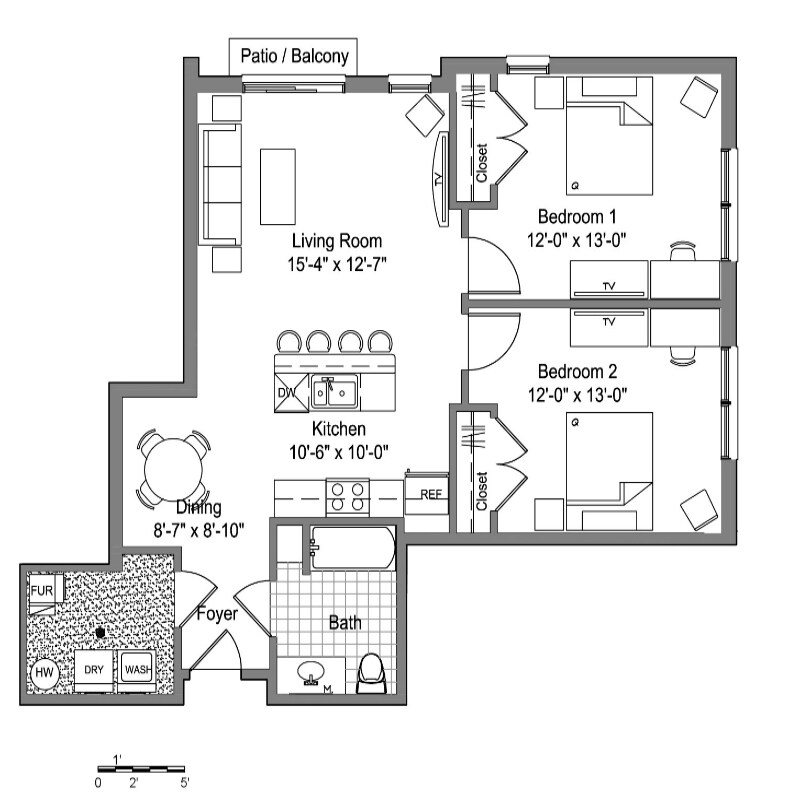 2 Bed 1 Bath - Floorplan 1 Apartment Unit: 301Apartment Model: 2 Bed 1 Bath$1,9952 Bedroom, 1 Bath, 1000 sq ftAvailable Now2 Bed 2 Bath