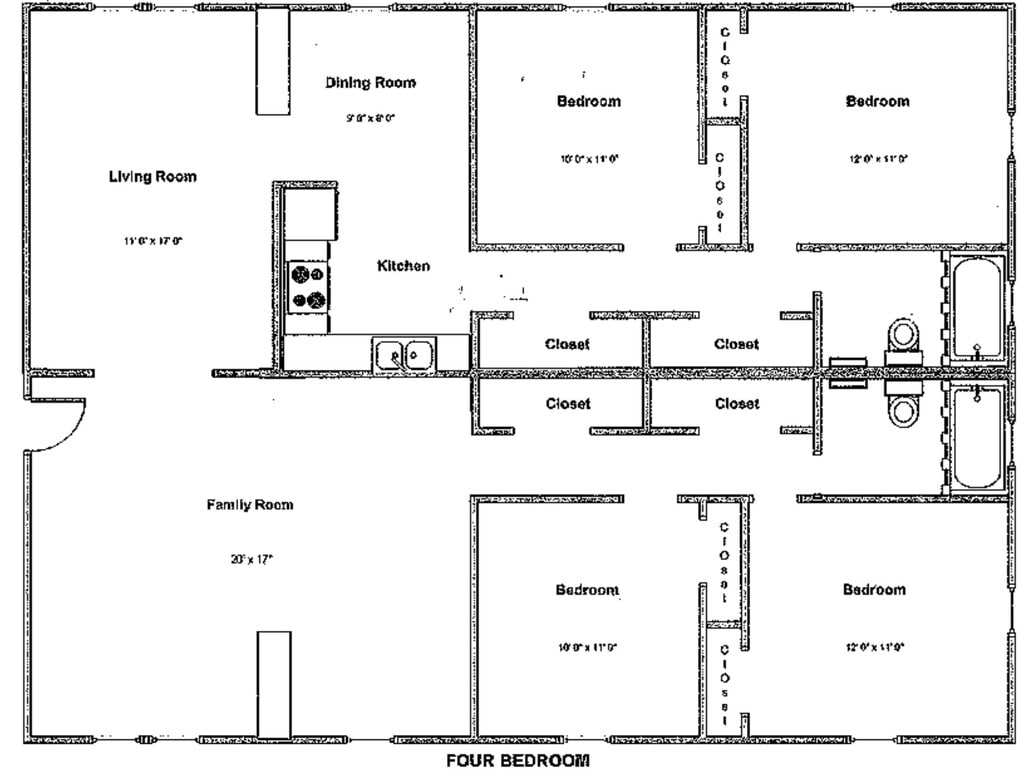 4 Bedroom, 2 Bath - Floorplan 1 Apartment Unit: 1401Apartment Model: 4 Bedroom, 2 Bath$1,8004 Bedroom, 2 Bath, 1588 sq ftAvailable NowApartment Unit: 2204Apartment Model: 4 Bedroom, 2 Bath$1,8004 Bedroom, 2 Bath, 1588 sq ftAvailable April 7, 2026
